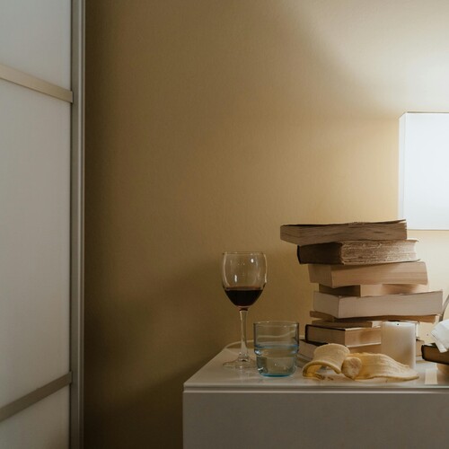 Sleek glass bedside table